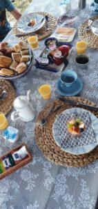 U kunt in de eetkamer of, bij mooi weer, in de tuin gebruik maken van het ontbijt. Ook serveren wij een aantal avonden per week een Table d’hôtes.